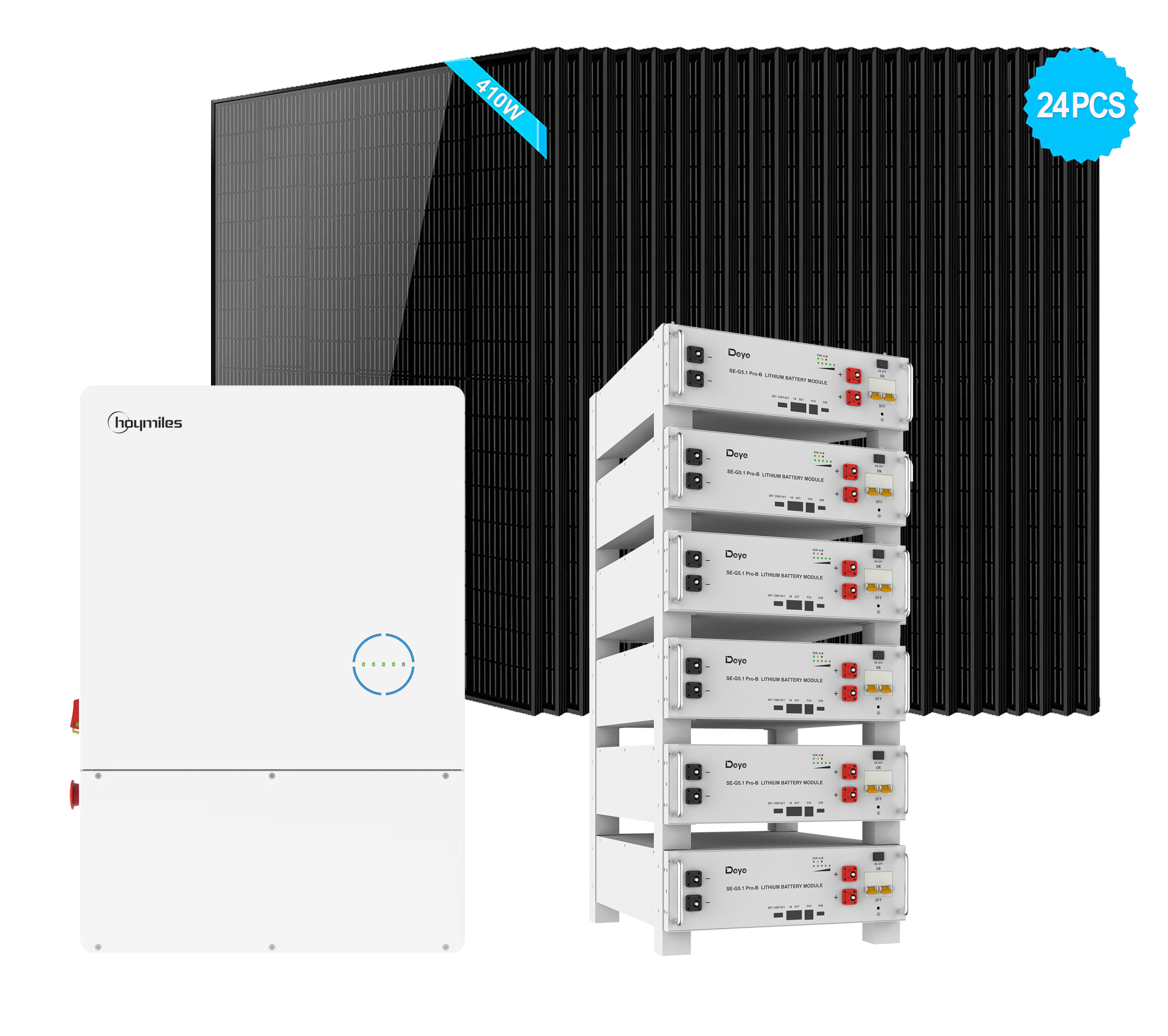 Hybrid Solar Kits With Hoymiles 11.5kW Hybrid Inverter + 6PCS Deye SE-G5.1 Pro-B 5.12kWh LFP Rack-Mounted Battery + 32PCS 410W Solar Panels